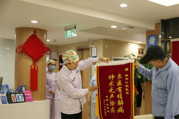 李老先生制作了一面錦旗送給聯(lián)邦口腔醫(yī)院,表達(dá)了對醫(yī)護人員的感激之情。