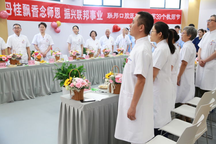 教師節(jié)慶祝活動(dòng),以一首紅歌《團(tuán)結(jié)就是力量》圓滿結(jié)束,郭天文教授帶領(lǐng)大家唱出了聯(lián)邦口腔大家庭團(tuán)結(jié)和友愛,傳遞了奮斗拼搏的精神力量。此次聯(lián)邦口腔醫(yī)院慶祝教師節(jié)活動(dòng),充分展現(xiàn)醫(yī)院師生和諧、積極進(jìn)取的精神風(fēng)貌,展現(xiàn)了醫(yī)院尊師重教的文化氛圍,也為第39個(gè)教師節(jié)獻(xiàn)上了美好祝福,我們堅(jiān)信聯(lián)邦口腔醫(yī)院將在鄧邦蓮院長的領(lǐng)導(dǎo)下,在各位教授的帶領(lǐng)下,廣大聯(lián)邦人同心同德、團(tuán)結(jié)一致,不忘初心,砥礪前行,明天聯(lián)邦一定會(huì)更加美好!