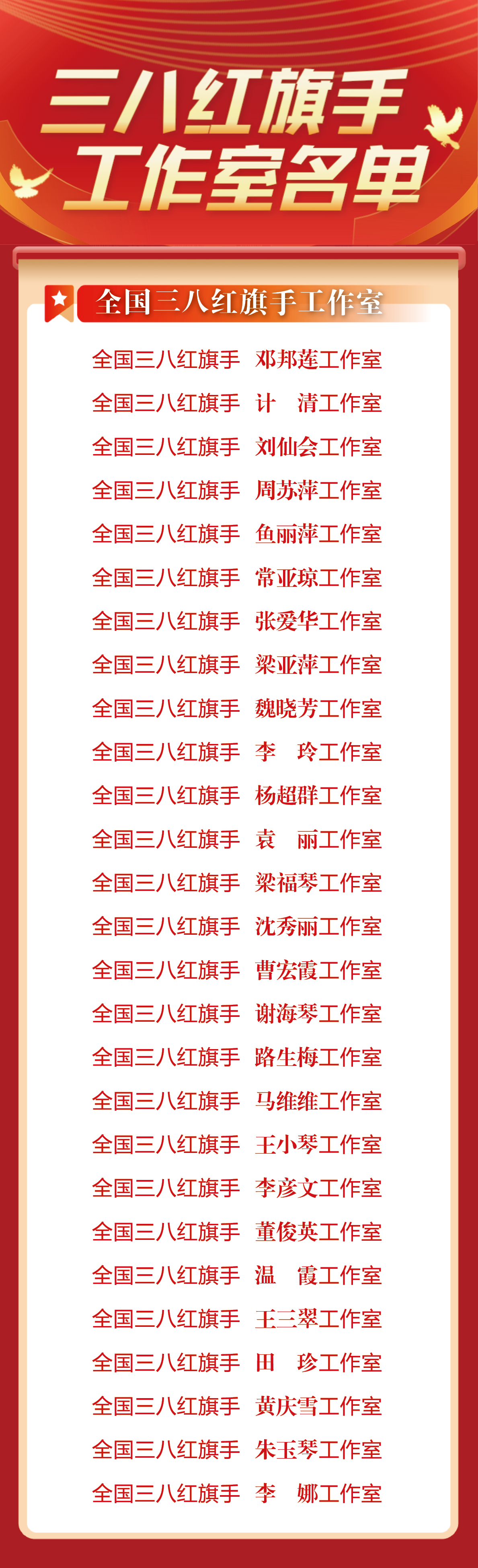 近日,陜西省婦聯(lián)公布的首批陜西省三八紅旗手(集體)工作室名單中,按照《關(guān)于在全省婦聯(lián)系統(tǒng)建立三八紅旗手(集體)工作室的通知》(陜婦通字〔2022〕77號)要求,省婦聯(lián)主席辦公會審議通過,決定命名全國三八紅旗手鄧邦蓮工作室等71個三八紅旗手工作室。