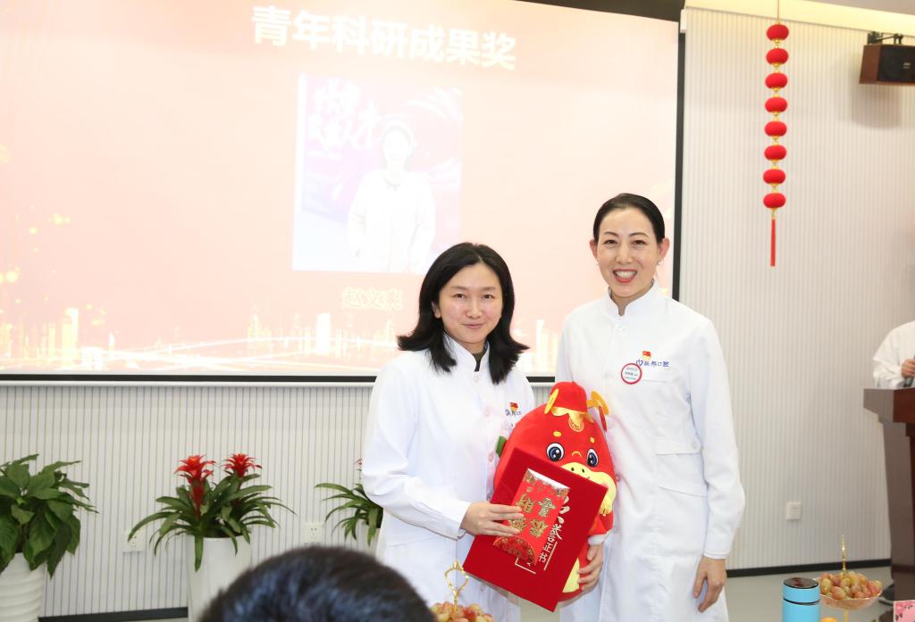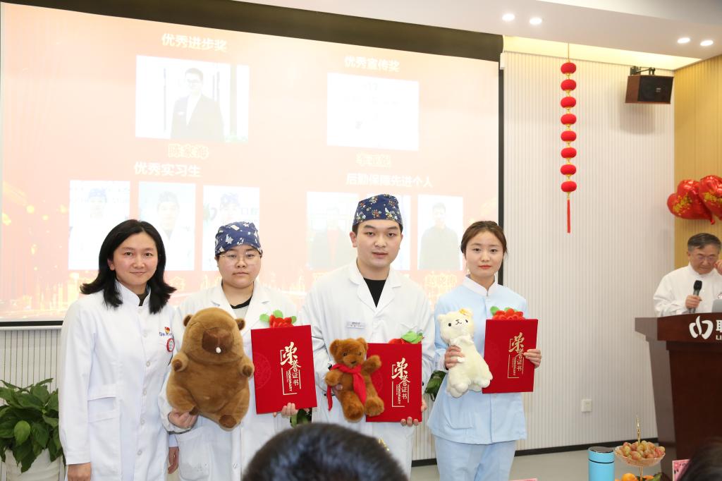 周嘉洪副院長圍繞提升醫(yī)療服務(wù)、管理優(yōu)化團(tuán)隊(duì)、踐行社會責(zé)任等多個維度曬出過去一年的成績單:(1)業(yè)績快速增長。購置設(shè)備運(yùn)用椅旁切削加工,把數(shù)字化技術(shù)應(yīng)用臨床,減少患者等待時間,也大大地方便了患者治療;全年接診患者同比增長25.5%,其中:激光治療、注射肉毒素、玻尿酸和疤痕封閉針、眼袋和疤痕切除術(shù)等接診治療的醫(yī)美患者日益增多;(2)學(xué)術(shù)成果累累。醫(yī)院獲批陜西省博士后創(chuàng)新基地,成為全國唯一一家民營口腔醫(yī)院。全年開展20余次國內(nèi)外學(xué)術(shù)交流,鄧邦蓮院長多次擔(dān)任大會主持人并作大會發(fā)言,她的團(tuán)隊(duì)的兩篇論文入選中國醫(yī)院協(xié)會口腔醫(yī)院分會學(xué)術(shù)年會交流;”基于人工智能方法設(shè)計(jì)合成抗微生物肽及其抑制多種口腔相關(guān)病原體的功能研究”項(xiàng)目列入“西安市重點(diǎn)產(chǎn)業(yè)鏈科技項(xiàng)目;《口腔疾病患者必讀》等11部著作和教材出版;連續(xù)兩年入選“西安英才計(jì)劃”青年人才項(xiàng)目名單;(3)隊(duì)伍建設(shè)提速。聯(lián)邦教授中新增國家級學(xué)會委員任職2人,省級學(xué)會委員任職8人;醫(yī)院新引進(jìn)專家教授8人,專家教授坐診達(dá)到全覆蓋;“四手操作”和每周一課系列培訓(xùn)、病歷規(guī)范書寫、疑難病例會診,教授帶教等促使年輕醫(yī)護(hù)隊(duì)伍迅速成長,職稱考試通過率達(dá)90%;(4)服務(wù)患者履行社會責(zé)任。通過發(fā)布短視頻、微信公眾號、美篇文案,每周五大講堂,學(xué)習(xí)強(qiáng)國等新媒體大力宣傳普及口腔健康知識;全年深入社區(qū)、校園開展義診科普活動76次;進(jìn)校園為2000名學(xué)生涂氟,為轄區(qū)500余名小學(xué)生進(jìn)行了窩溝封閉,聯(lián)邦人為提升全民口腔健康水平貢獻(xiàn)力量。(5)黨的建設(shè)進(jìn)一步加強(qiáng)。鄧邦蓮院長和院領(lǐng)導(dǎo)堅(jiān)持為黨員上黨課,以黨的建設(shè)帶動醫(yī)療服務(wù)、教學(xué)研和醫(yī)院管理的全面提質(zhì)提速,黨支部工作納入醫(yī)院整體工作同部署同落實(shí)同檢查同考核;把積極要求進(jìn)步的員工作為培養(yǎng)對象,為黨內(nèi)補(bǔ)充新鮮血液,全年吸收一名優(yōu)秀員工入黨,黨員占比達(dá)到53.3%。黨員影響和帶動醫(yī)護(hù)人員,學(xué)業(yè)務(wù)練技術(shù),秉承一次就醫(yī),終身為友宗旨,醫(yī)院諸多事跡得到央視網(wǎng)、“學(xué)習(xí)強(qiáng)國”、人民日報、“西安日報”、今日頭條等廣泛宣傳,受到社會各界的一致好評。