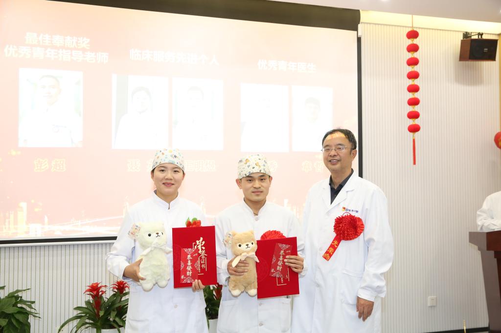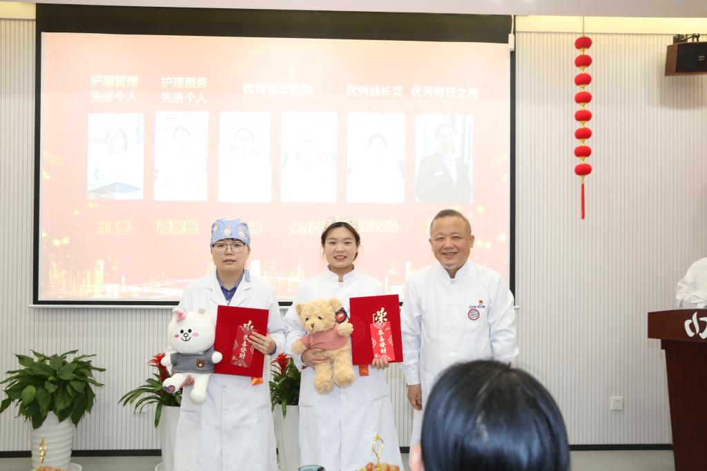醫(yī)生代表周丹梅主任、護(hù)士代表王蕾護(hù)士長和青年醫(yī)生代表章哲發(fā)表獲獎感言