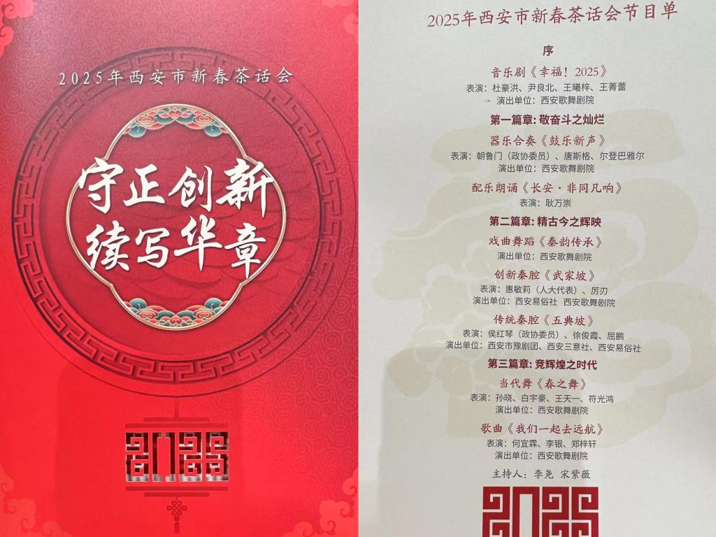 1月24日,值乙巳蛇年春節(jié)即將來(lái)臨之際,2025年西安市新春茶話會(huì)在熱烈溫馨的氛圍中盛大舉行。省委常委、市委書(shū)記方紅衛(wèi),市長(zhǎng)葉牛平,市人大常委會(huì)主任韓松,市委副書(shū)記李婧,市政協(xié)主席王吉德等領(lǐng)導(dǎo)與各界精英齊聚一堂,大家共迎新春佳節(jié),共商西安發(fā)展藍(lán)圖。