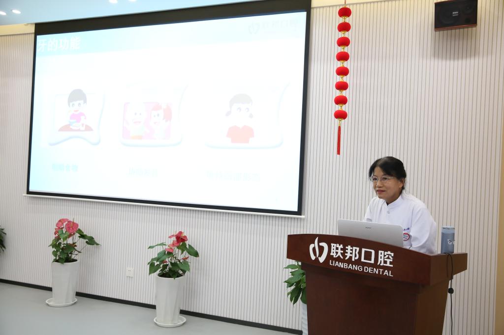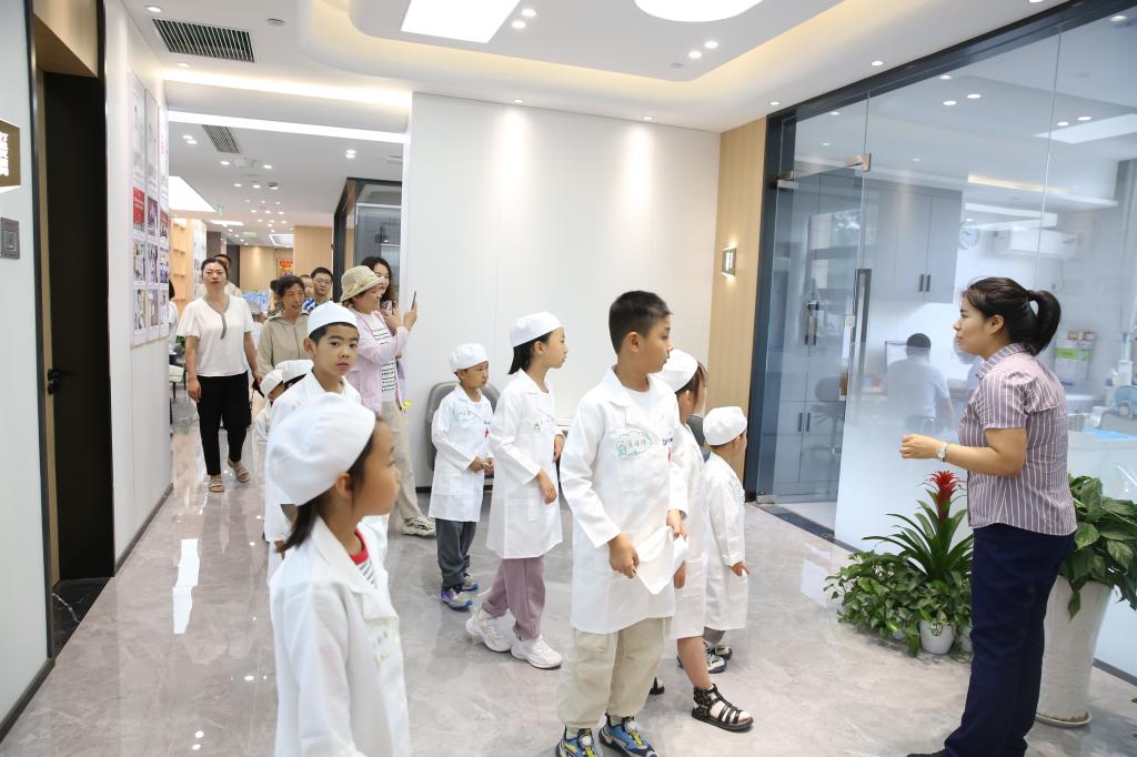 在工作人員的帶領(lǐng)下,小牙醫(yī)和家長們參觀了醫(yī)院環(huán)境,對醫(yī)院的布局和設(shè)施有了初步的了解。隨后,兒牙主任鄧轉(zhuǎn)云教授為小牙醫(yī)們帶來了一場精彩紛呈的“兒童口腔保健”健康講座。鄧教授借助牙齒模型和生動有趣的 PPT,深入淺出地向小朋友們講解了牙齒的構(gòu)造、護(hù)牙小知識等內(nèi)容。為了加深孩子們對知識的理解,現(xiàn)場采取了互問互答的形式,孩子們積極參與,對答如流,現(xiàn)場氣氛熱烈非凡。