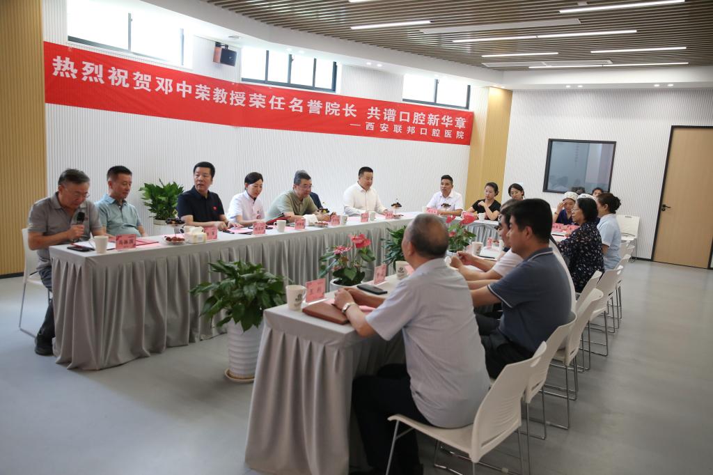 田蘇輝副主席、巨拴科局長先后發(fā)表講話,對鄧中榮院長的受聘表示祝賀,對西安聯(lián)邦口腔醫(yī)院的發(fā)展成果給予高度肯定,并圍繞醫(yī)療創(chuàng)新、產(chǎn)學(xué)研融合等方向提出許多好的建議。在交流環(huán)節(jié),與會專家、同仁暢所欲言,為醫(yī)院未來發(fā)展積極建言獻策。