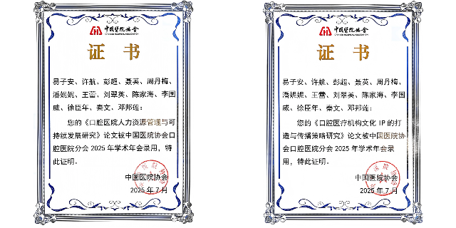 在學(xué)術(shù)年會(huì)上,西安聯(lián)邦口腔醫(yī)院提交的兩篇論文《口腔醫(yī)院人力資源管理與可持續(xù)發(fā)展研究》和《口腔醫(yī)療機(jī)構(gòu)文化IP的打造與傳播策略研究》脫穎而出,成功被大會(huì)錄用?!犊谇会t(yī)院人力資源管理與可持續(xù)發(fā)展研究》一文深入剖析了口腔醫(yī)院在人力資源管理方面的現(xiàn)狀與挑戰(zhàn),提出了創(chuàng)新性的管理策略,為口腔醫(yī)院的可持續(xù)發(fā)展提供了有力的理論支持和實(shí)踐指導(dǎo)。另一篇論文《口腔醫(yī)療機(jī)構(gòu)文化IP 的打造與傳播策略研究》則聚焦于口腔醫(yī)療機(jī)構(gòu)的文化建設(shè),探討了如何通過(guò)打造獨(dú)特的文化IP來(lái)提升機(jī)構(gòu)的品牌影響力和患者忠誠(chéng)度,為口腔醫(yī)療機(jī)構(gòu)的文化傳播提供了全新的思路和方法。這兩篇論文的錄用,充分展現(xiàn)了西安聯(lián)邦口腔醫(yī)院在口腔醫(yī)療領(lǐng)域的專業(yè)實(shí)力和學(xué)術(shù)研究水平,也體現(xiàn)了醫(yī)院在行業(yè)內(nèi)的領(lǐng)先地位。
