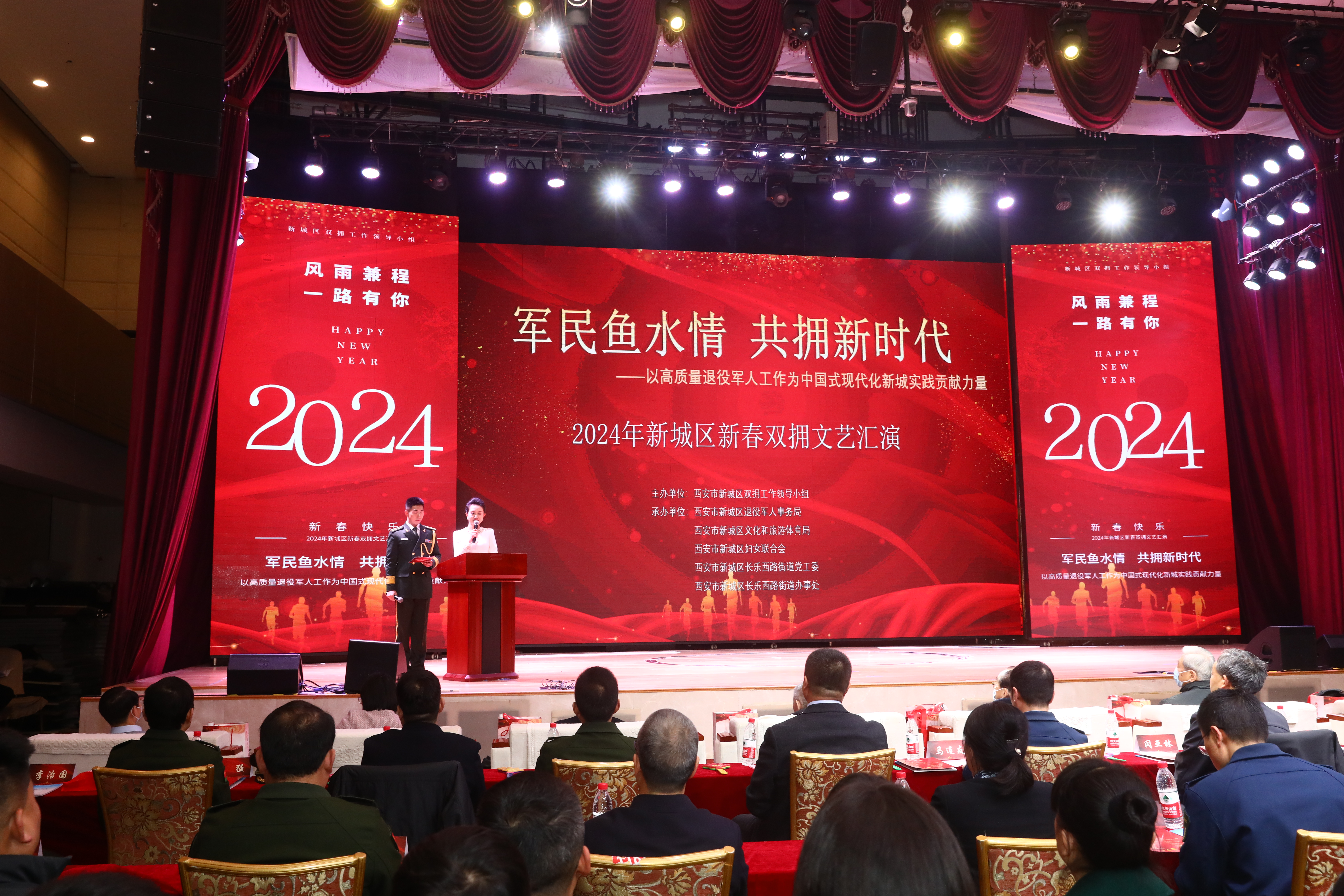 軍民魚水情,共擁新時代。2024年1月16日,由新城區(qū)雙擁工作領(lǐng)導(dǎo)小組主辦,新城區(qū)退役軍人事務(wù)局、新城區(qū)文化旅游和體育局、新城區(qū)婦女聯(lián)合會、長樂西路街道黨工委及長樂西路街道辦事處承辦的2024年新城區(qū)新春雙擁文藝匯演,在華東萬悅城黑芝麻劇場成功舉辦。西安聯(lián)邦口腔醫(yī)院參加了此次文藝匯演活動。