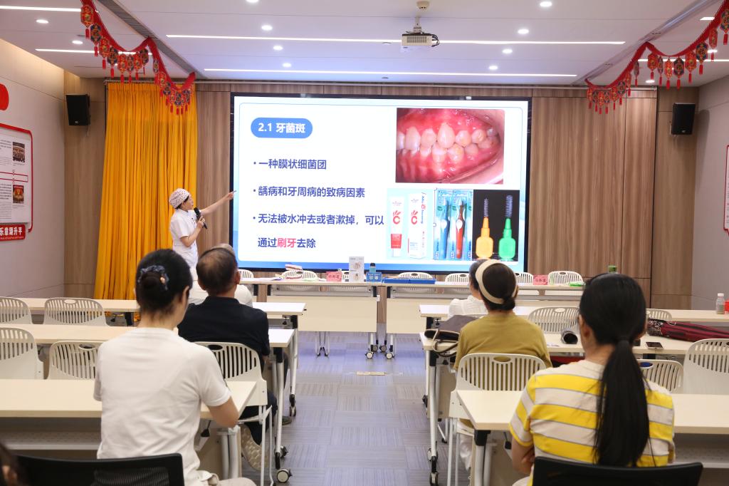 活動現(xiàn)場,鄧邦蓮院長以“口腔健康,全身健康”為主題開展科普講座。她結(jié)合多年臨床經(jīng)驗,用通俗易懂的語言講解了口腔健康與全身健康的密切關(guān)聯(lián),從齲齒預(yù)防、牙周病危害到牙齒缺失對消化功能的影響等常見問題,通過真實案例和數(shù)據(jù)生動闡釋“小牙齒關(guān)乎大健康”的理念。講座中,鄧院長還特別針對老年人常見的義齒護理、兒童齲齒預(yù)防等問題進行重點講解,手把手傳授正確刷牙方法和日常口腔護理技巧,現(xiàn)場居民認真聆聽,不時拍照記錄。