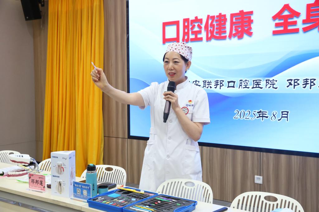 2025年8月13日上午,西安市人大代表、西安聯(lián)邦口腔醫(yī)院黨支部書記、院長鄧邦蓮博士帶領(lǐng)口腔醫(yī)療團隊走進文景東區(qū)社區(qū),為居民們帶來了一場生動實用的口腔健康科普活動,將專業(yè)醫(yī)療服務(wù)送到居民“家門口”。