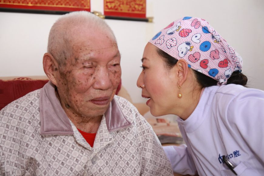 (欄目訊)4月17日西安聯(lián)邦口腔醫(yī)院院長鄧邦蓮帶領(lǐng)楊富生教授、醫(yī)生巨妍靜、護士尚瓊杰、辦公室主任楊超,來到未央?yún)^(qū)泰和居小區(qū),給102歲老人沈福根進行了口腔免費治療,家屬和老人非常開心。