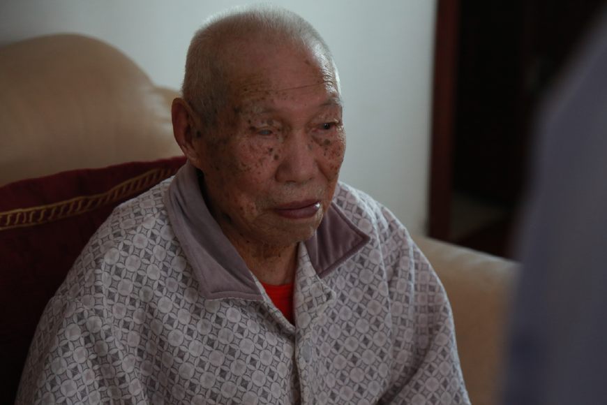 很快,我們就到了泰和居小區(qū),見到102歲老人沈福根,老人精神看起來不錯,就是耳背了一點,說話需要大聲,老生出生在1915年,上海人,1956年支援大西北來到西安,在陜西第八建筑公司工作,高級電工,女兒也已經(jīng)70多歲,孫子30多歲,家里收拾的很整齊。