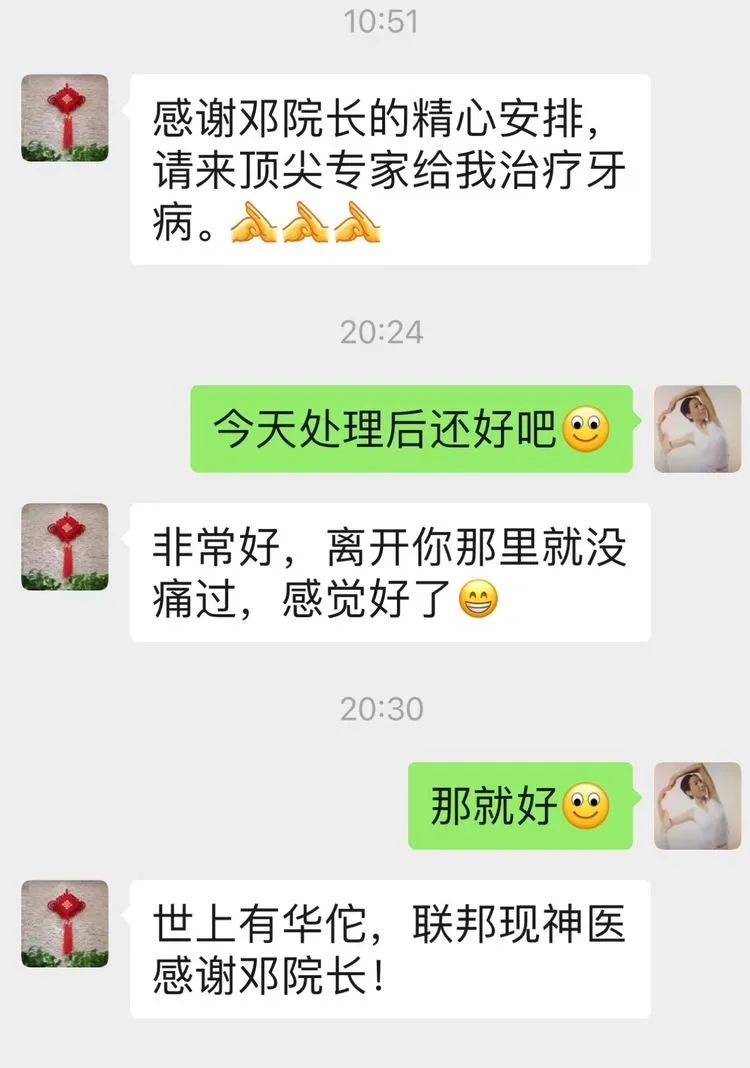 同一天,還有接診了一位從深圳遠(yuǎn)道而來(lái)的小患者,在治療結(jié)束后,全家對(duì)彭教授高超的技術(shù)表示贊揚(yáng),對(duì)聯(lián)邦口腔醫(yī)院表述感謝!